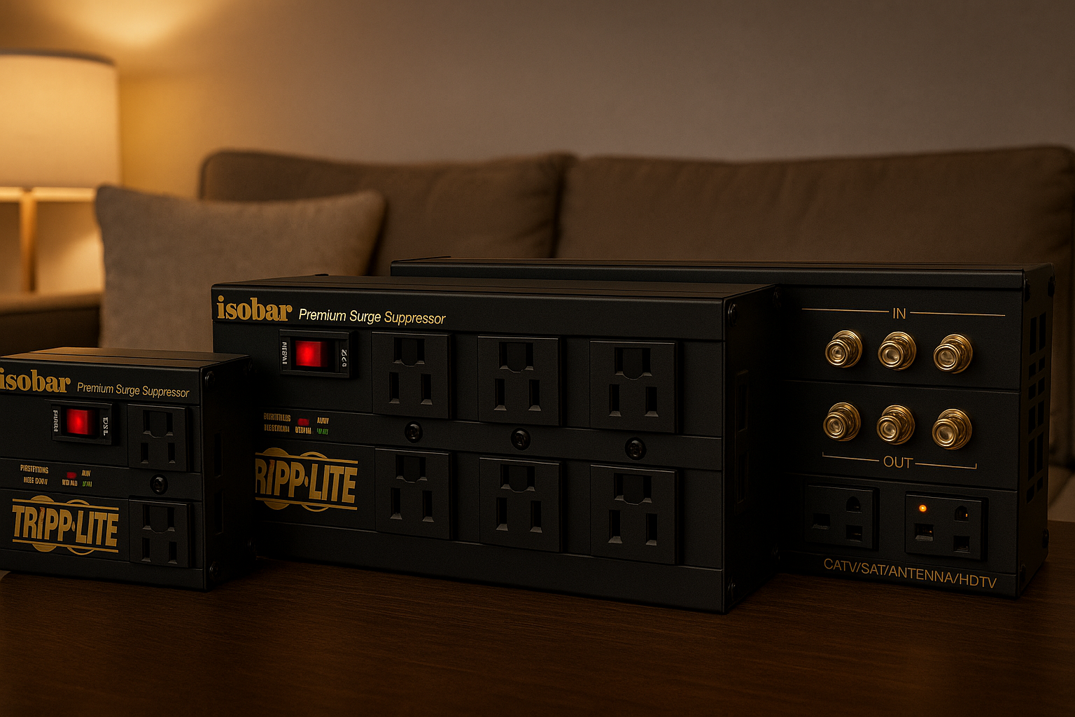 The surge-absorption components in every model have a 3330 joules rating which protects equipment from power irregularities while delivering stable electrical flow.